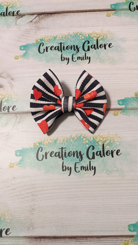 Valentine's Black/White Stripe with Red Hearts Print Headwraps & Bows